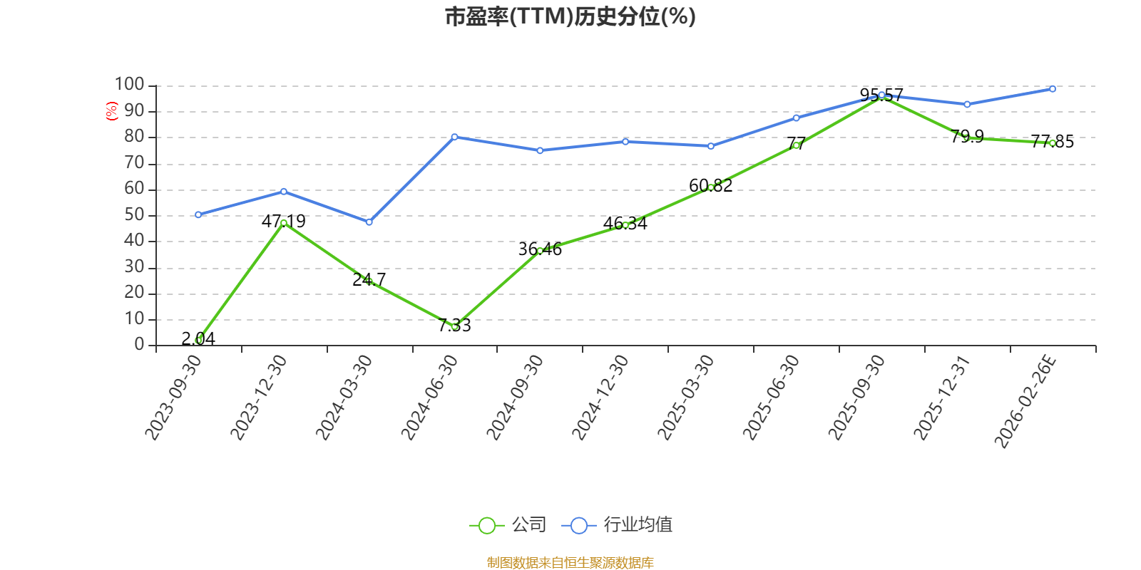 市盈率、市净率为负时,不显示当期分位数,会导致折线图中断。